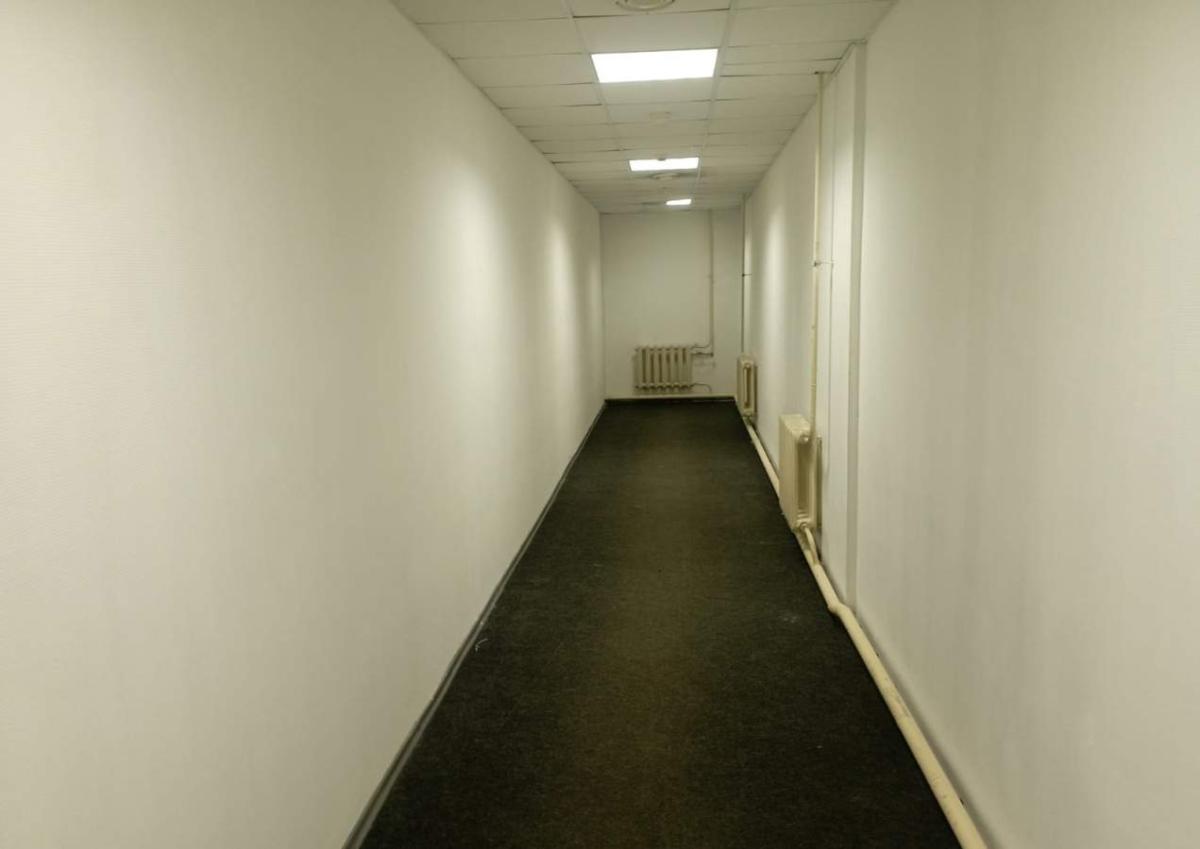 Стены - окрашены водоэмульсионной краской; потолок - подвесной типа "Армстронг"; пол - ковролин.