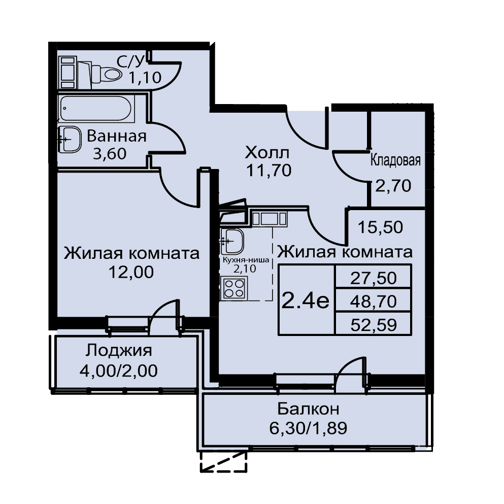| Площадь | 52.59 кв.м. |