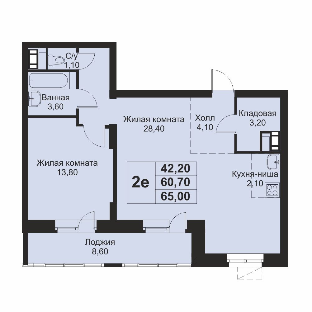 | Жилая площадь | 42.2 кв.м. |