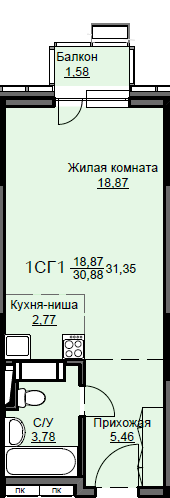 | Жилая площадь | 18.87 кв.м. |