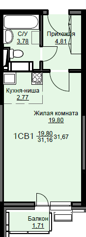 | Жилая площадь | 19.8 кв.м. |