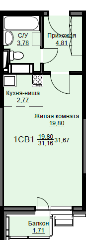 | Жилая площадь | 19.8 кв.м. |