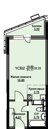 Площадь 32.5 кв.м.