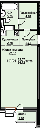 Квартира в ЖК «Соболевка» 37.8м2 на 3 этаже