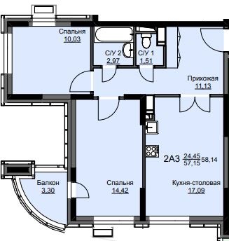 | Площадь | 58.5 кв.м. |