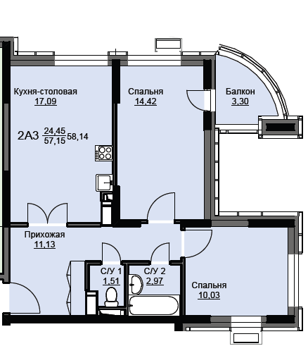 | Площадь | 58.5 кв.м. |
