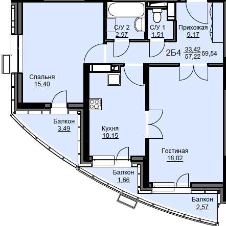 | Площадь кухни | 10.15 кв.м. |