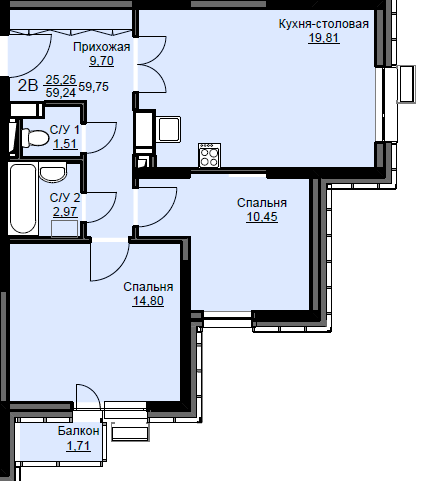 | Жилая площадь | 25.25 кв.м. |