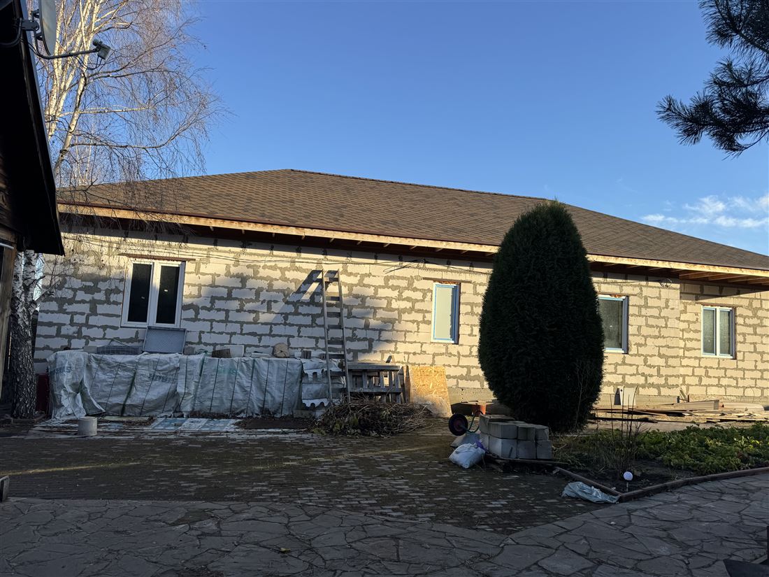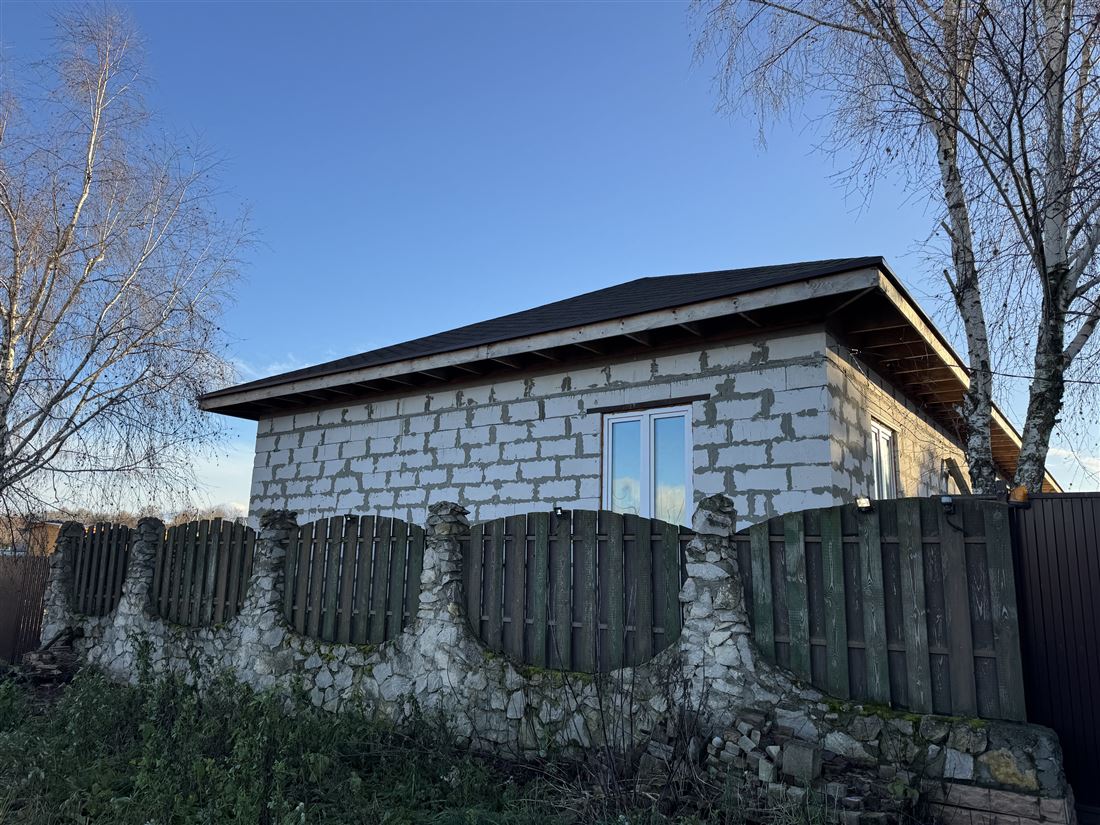 Недостроенный дом 1 этаж, большая гостиная 4 комнаты, кухня, бойлерная, сан узел, гардеробная. Второй этаж можно тоже построить конек крыши поднят на 2,8 м2. Построен из газоселикатного блока, фундамент 2х уровненный литой. В дом заведен свет, вода и выведена в септик, газовая труба на участке подведена к бойлерной. Громоотвод есть. На участке 10 соток, есть летний домик с верандой и НТВ антенной. Уличный туалет и душ. Дровник.