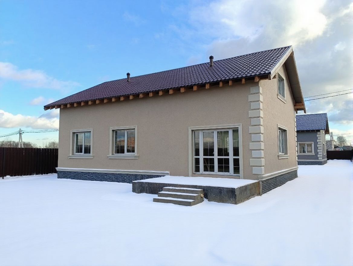 - Фасад: Штукатурка, покраска, фасадный декор; Цоколь утеплен и облицован термопанелями; выполнена отмостка;