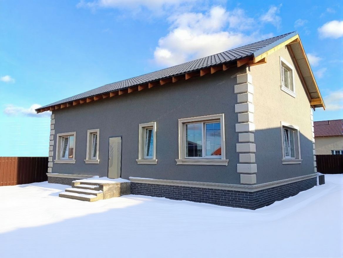 - Фасад: Штукатурка, покраска, фасадный декор; Цоколь утеплен и облицован термопанелями; выполнена отмостка;