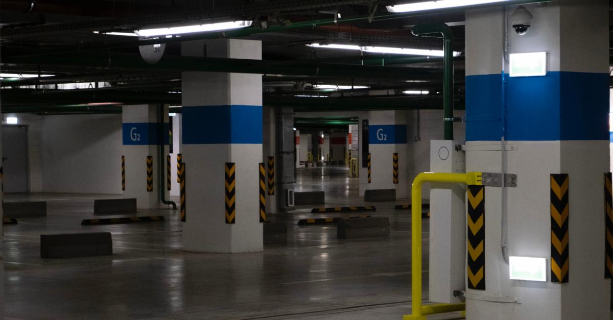 Профессиональная мойка внутри паркинга.