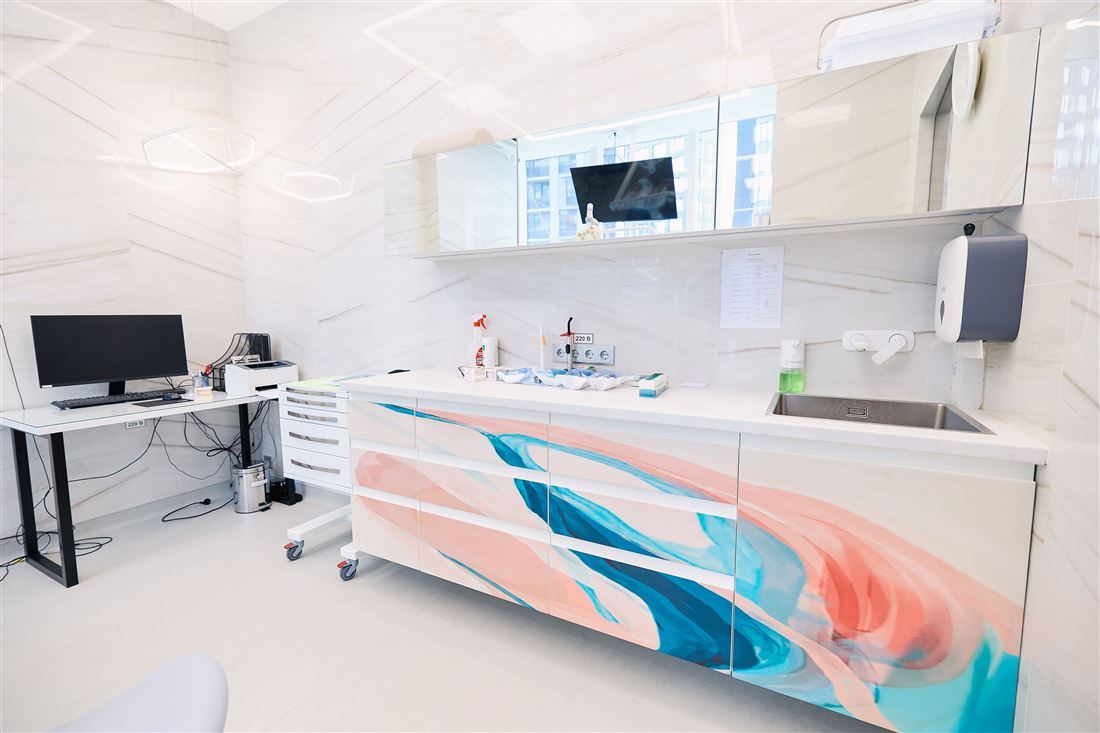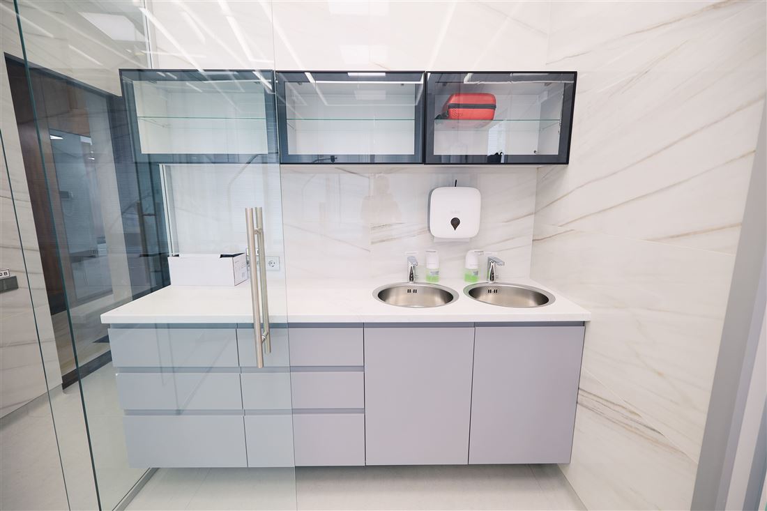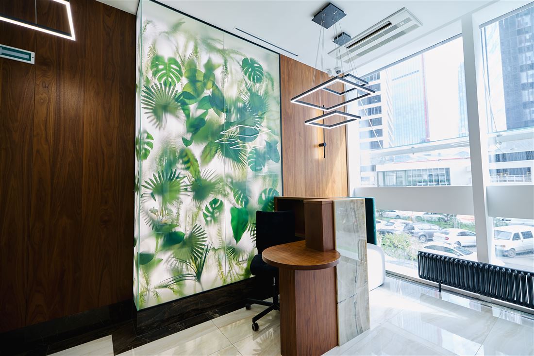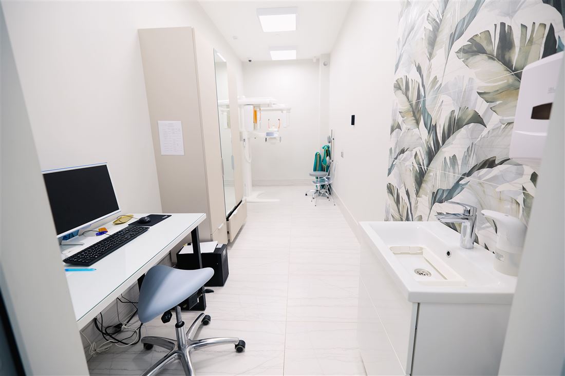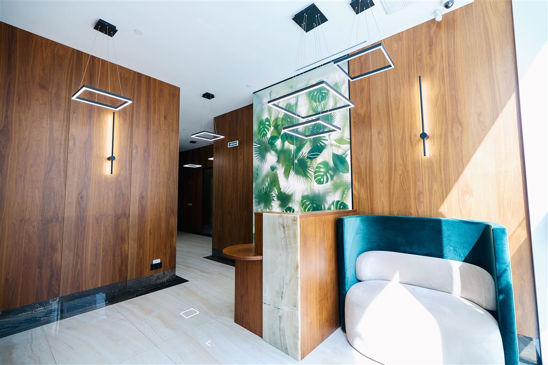На первом этаже вас ждёт уютный ресепшен, комфортная зона ожидания для клиентов, удобные кабинеты, переговорная комната и всё необходимое для работы. А на втором этаже — дополнительный ресепшен, просторный холл, рабочие кабинеты и даже специальный рентген-кабинет!