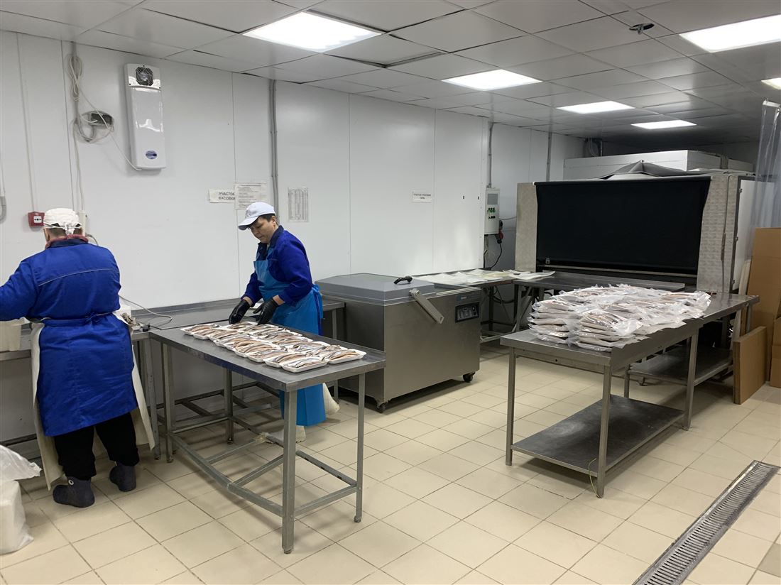 Помещения (зоны): раздевалка/санпропускник, санузел, дефростация (воздушной/стеллажной, в воде (емкости), распаковки, распиловки, конвейер глазуровки, разделки (филетирования), камера шоковой заморозки, установка контактной заморозки, упаковки (вакуум/скин, запайка, гофрокороб), холодильная камера в производстве, камера отходов, склад тары, склад химии, склад готовой продукции, компрессорная 2 шт.
