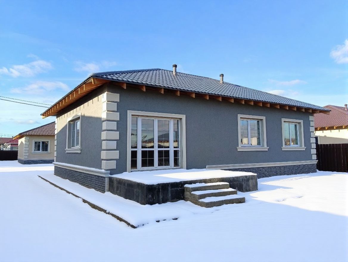 - Фасад: Штукатурка, покраска, фасадный декор; Цоколь утеплен и облицован термопанелями; выполнена отмостка;