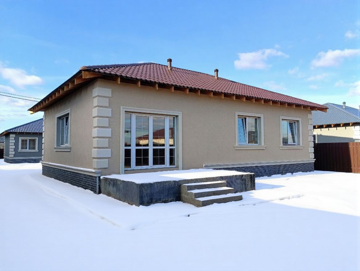 - Фасад: Штукатурка, покраска, фасадный декор; Цоколь утеплен и облицован термопанелями; выполнена отмостка;