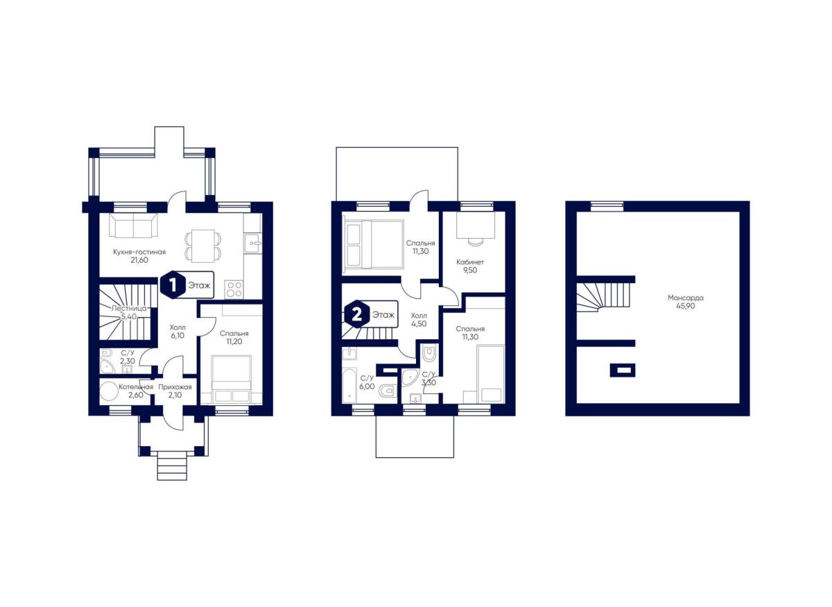- Мансарда: 45.9 м