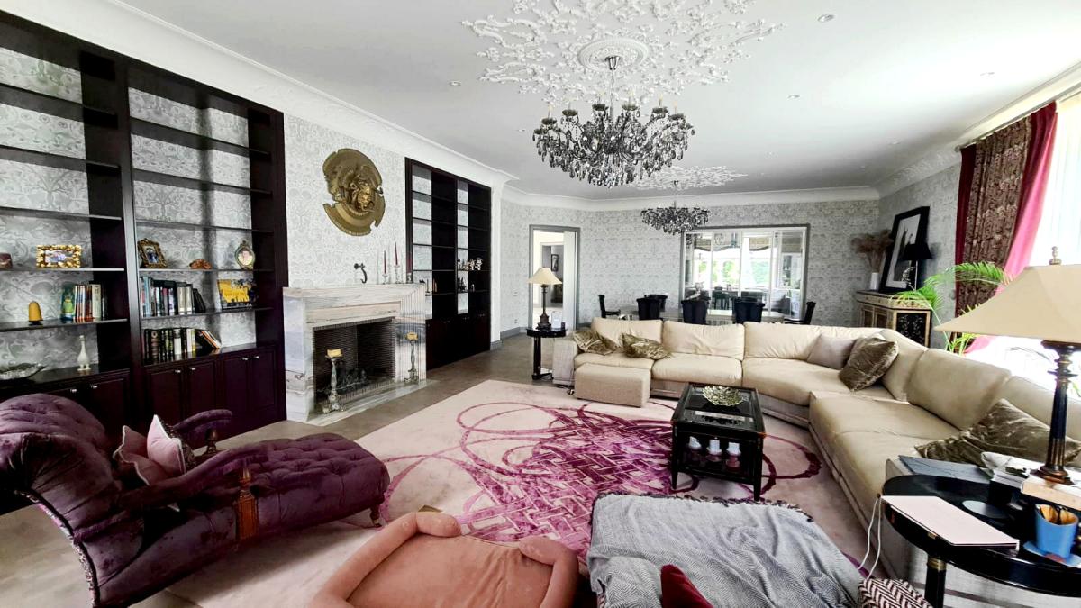 Дом полностью укомплектован дорогостоящей мебелью и готовый к проживанию. Вся мебель на заказ в компании Трио итальянских производителей, корпусная мебель вся на заказ по предварительному проекту и согласованию. Итальянская кухня на заказ с индивидуальной росписью с изображениями чертополохов. Техника ilve, liebherr, Miele. Бильярд русский 12 футов в массиве дуба, бар в массиве дуба. Освещение в круглых холлах Serip по индивидуальному заказу. Камин из наборного французского кирпича в обрамлении натурального мрамора. Хамам по индивидуальному проекту от компании, чьи работы в книге рекордов Гиннеса.