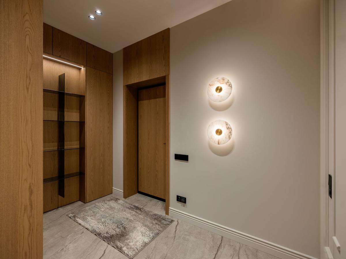 Выполнена отделка в современном стиле: натуральный дубовый паркет, оконные рамы - лиственница, итальянский керамогранит, стильные дорогие высокие двери, бытовая техника ASKO, Liebherr полностью приобретена для кухни.