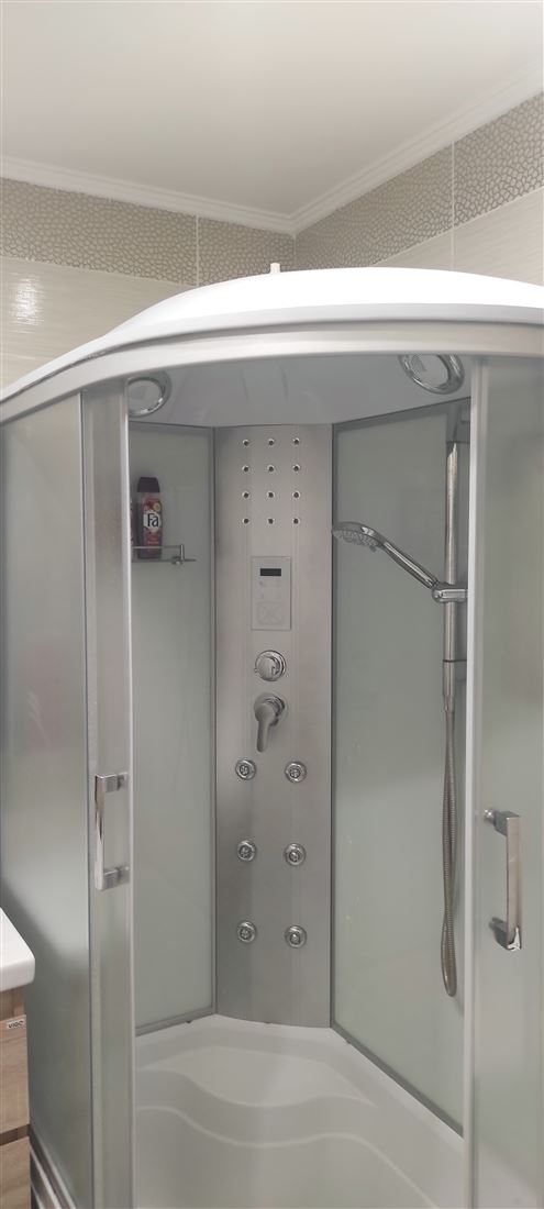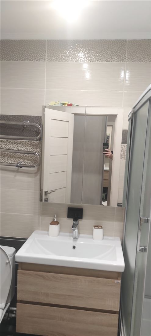 Шкаф-купе в прихожей. Туалет совмещен, душевая кабина, стиральная машина.