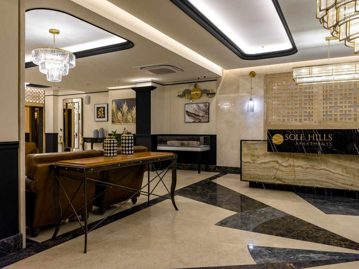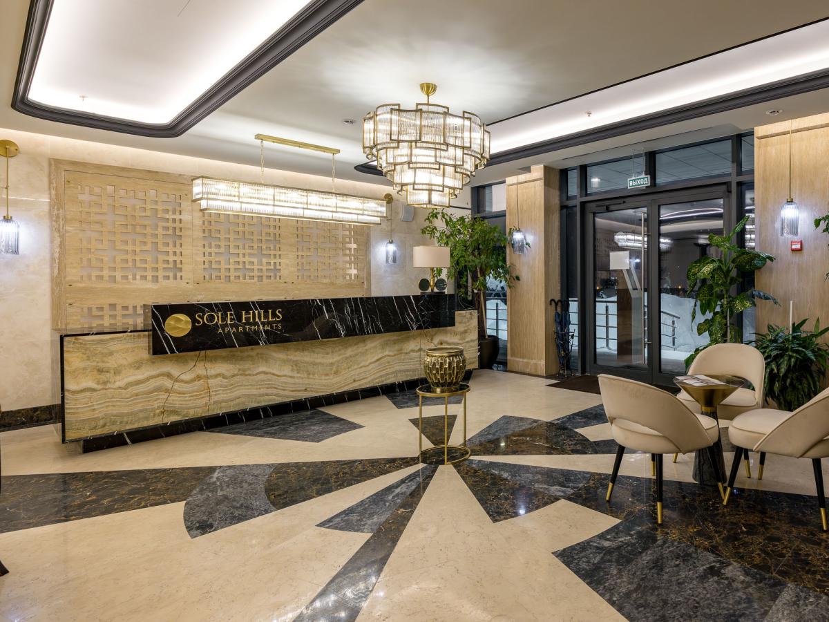 В Sole Hill роскошные лобби. В отделке использованы мрамор, оникс, гранит и латунь.