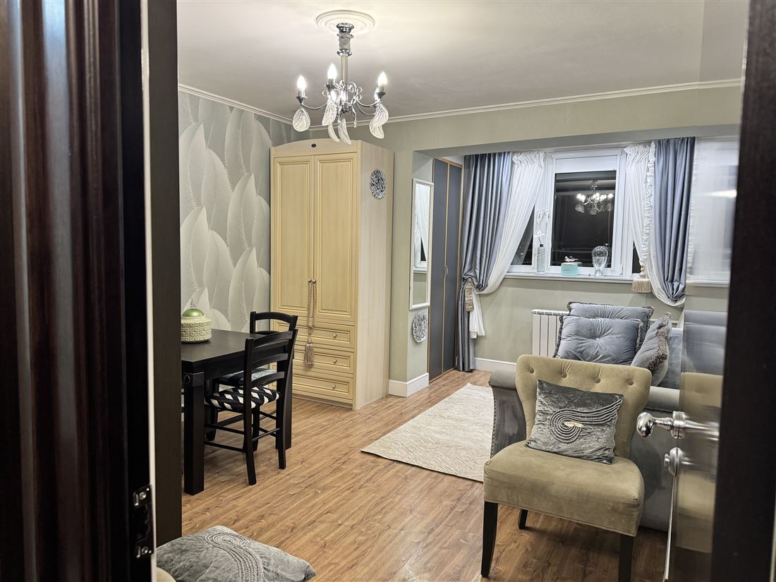 ID в ИМЛС: 47540661 Продается 1-комнатная квартира общей площадью 42 кв.метра в самом центре города Видное (4 км от Москвы). Сделан архитектурный проект по оптимизации полезной площади, рассчитанной на семью из 4-х человек. В данном пространстве спроектирована евродвушка с изолированными комнатами и кабинетом, которые миксуются между собой по Вашему желанию. Кабинет площадью 8 кв.метров может стать как кухней, так и спальней или детской. Для переноса кухни в данное помещение заложены под полом коммуникации. Если оборудовать кабинет как спальню то вмещает 2-х спальный диван-кровать. Квартира очень хорошо зонирована за счет отсутствия балкона. Каждый член семьи может получить свое приватное место. В квартире много мест для хранения. Что очень важно для 1-комнатной квартиры. Кухня очень мобильная. Данное пространство может быть и гостиной и спальней и просторной кухней с приватным местом. В настоящий момент зонирована на 3 части (кухня, гостиная, приватное место). На фото отражены все зоны и детали пространства. В квартире установлен стационарный телефон с кодом 495. Дом ведомственный и населен большей частью сотрудниками МВД. Во дворе дома расположена детская площадка, детский сад, автомобильная парковка, 3 школы в шаговой доступности. Рядом с домом в шаговой доступности также находятся банк, управление ЖКХ, торговый центр Курс, сетевые продуктовые магазины Перекресток, Дикси, Пятерочка, салоны красоты, стоматология, большой парк с аллеей Славы, пруд, кинотеатр, центральный парк с каруселями, Георгиевский храм, множество разных кафе и ресторанов. У кинотеатра Искра проходят праздничные мероприятия, концерты с известными артистами и салюты. Рядом с домом расположены автобусные остановки что очень удобно. Транспорт ходит до метро Кантемировская, Домодедовская и до станции Расторгуево. До станции также можно дойти пешком. К дому примыкает Московский региональный социально-экономический институт (МРСИ). Летом дом окружен зеленью и цветами. Абсолютно выигрышный вариант!