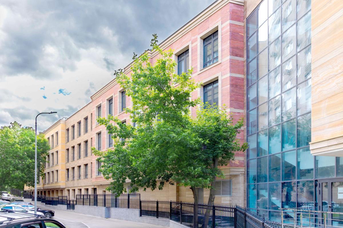 Фасады отделаны натуральным камнем, из окон открываются панорамные виды на парки и исторические особняки.