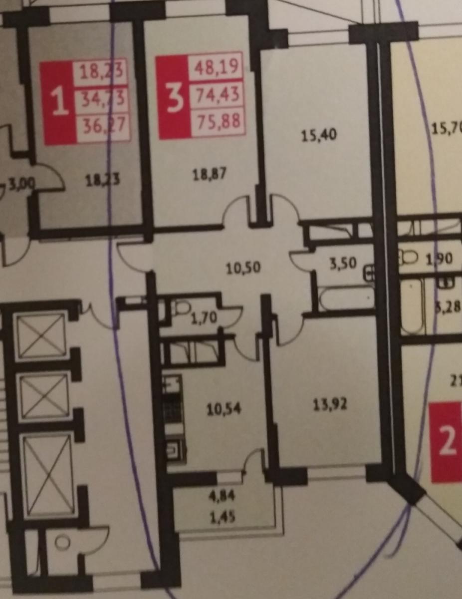 Жилая площадь 48.2 м2, кухня 10.54 кв.м. Площадь комнат: 18.87/15.40/13.92 м2, внутри евро ремонт, комнаты изолированные. Столовая объединена с кухней аркой. Квартира частично с мебелью. Раздельных санузлов - 1.