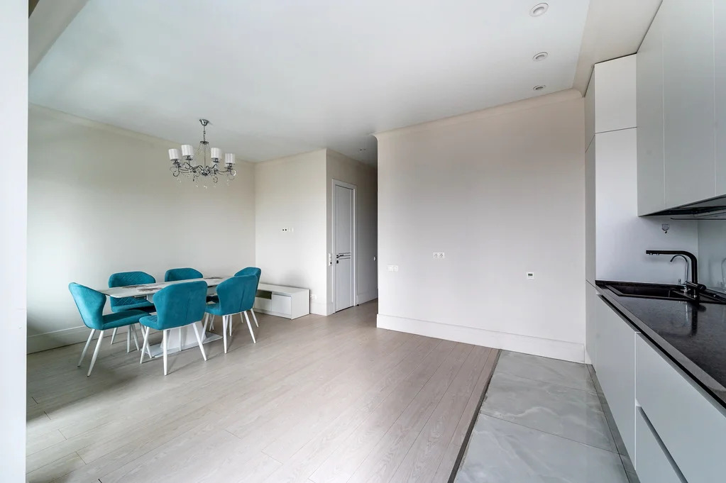 Площадь квартиры — 84 м2, потолки 3, 86 м. Идеальная высота — 8 этаж из 21: отличный обзор города, окна на разные стороны дома.