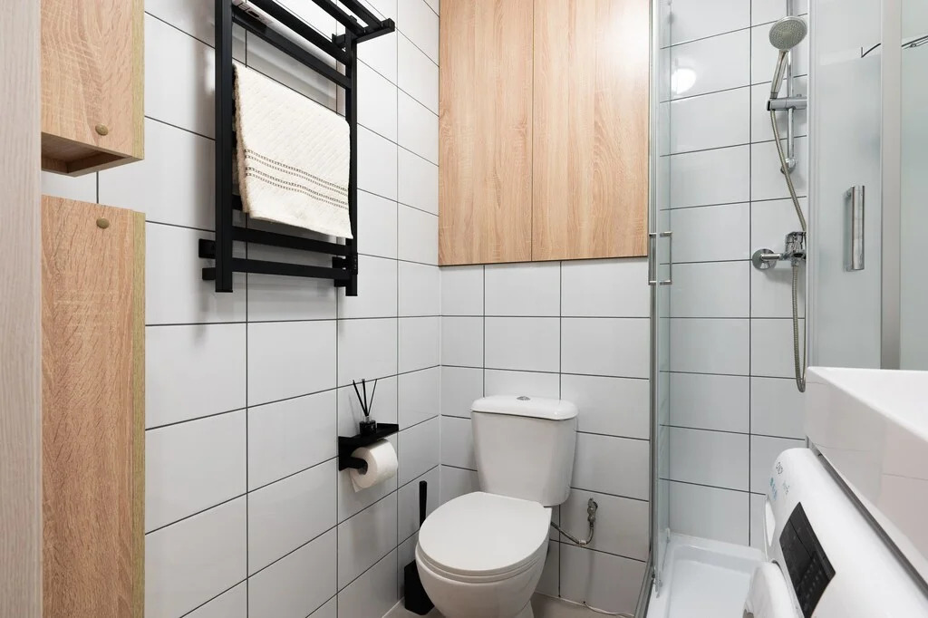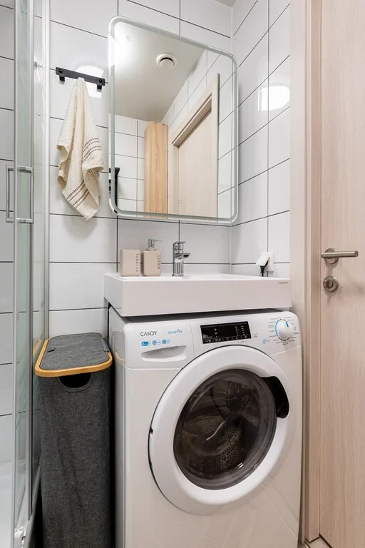 - Большой вместительный хозяйственный шкаф в санузле;
