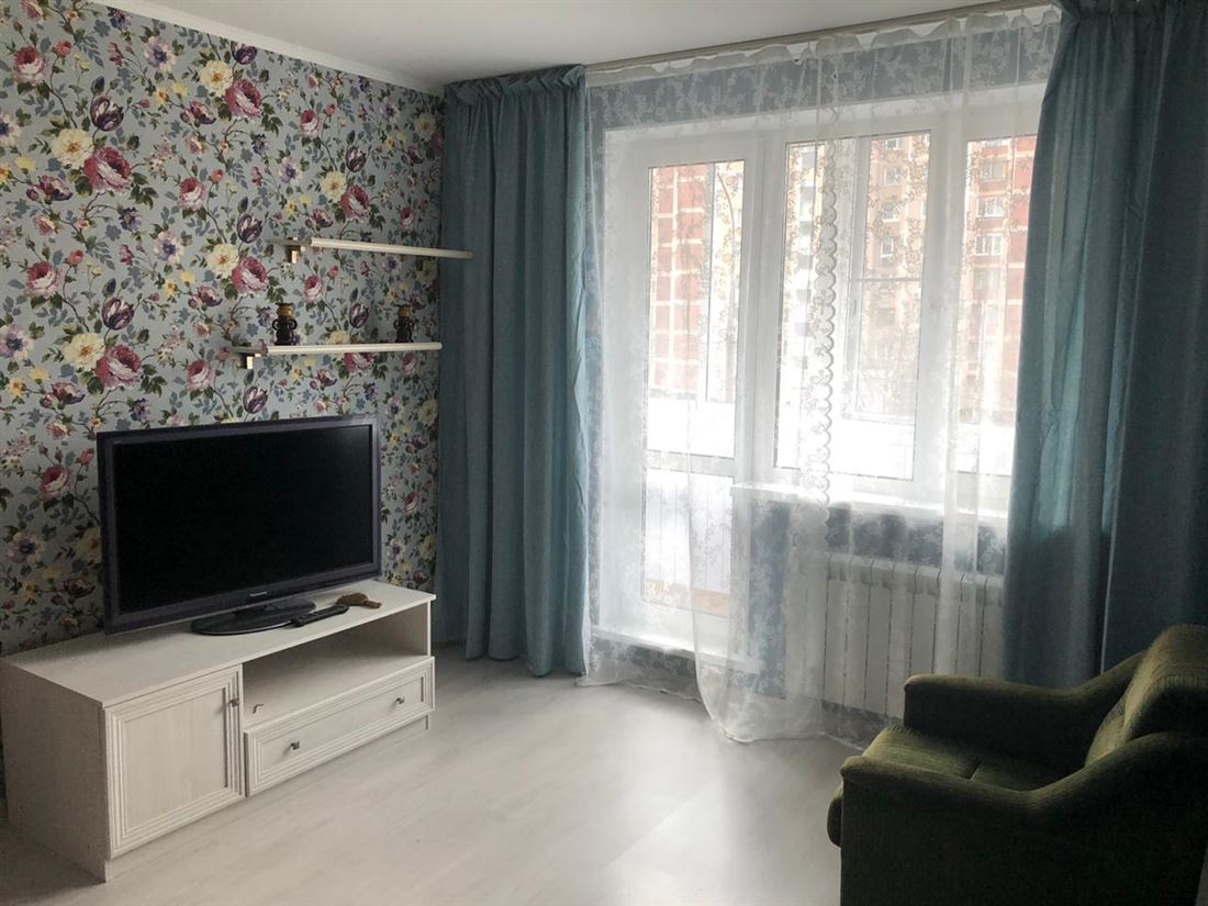 Квартира укомплектована всей необходимой для комфортного проживания мебелью: спальный гарнитур с комфортной для сна и отдыха 2-х спальной кроватью с ортопедическим матрасом; удобное кресло для отдыха перед телевизором или книгой. Из комнаты выход на застекленную лоджию с видом во двор.