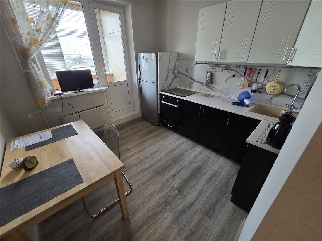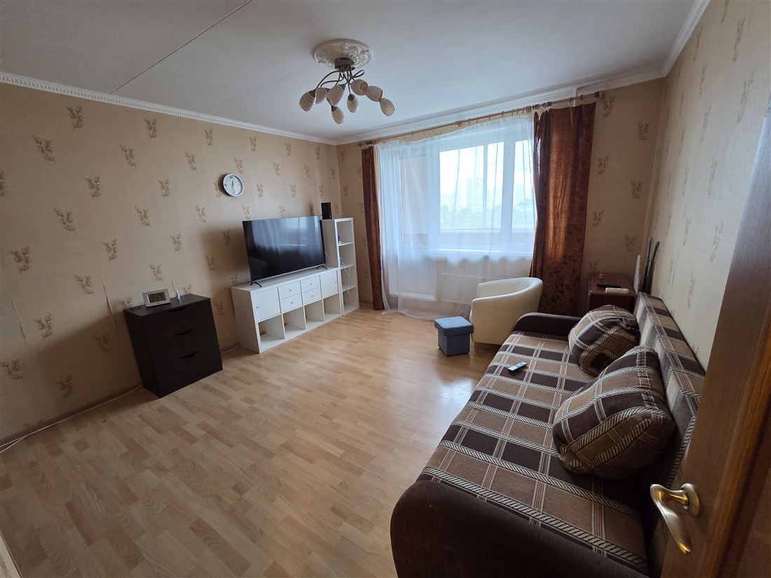 Квартира располагается в уютном, обжитом (то есть вся ифраструктура есть и она рядом + Пятерочка в соседнем доме, 2 минуты от подьезда) + ТЦ "Северное Сияние" с большим супермаркетом и DDX fitnes в 6 минутах ходьбы) районе Москвы Северное Бутово (ул. Старобитцевская, дом 23 к 1)