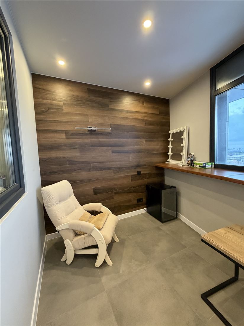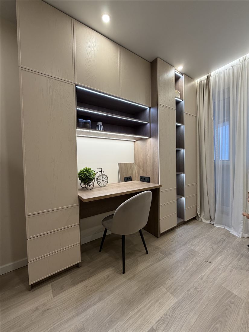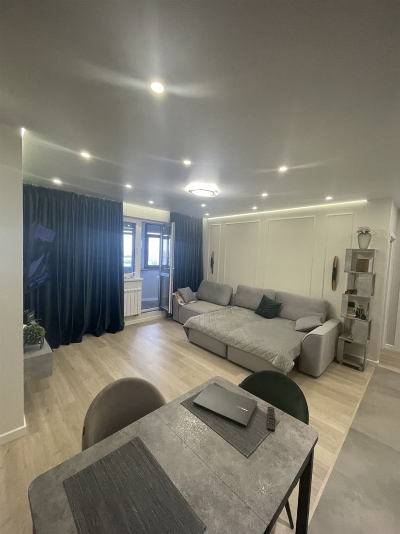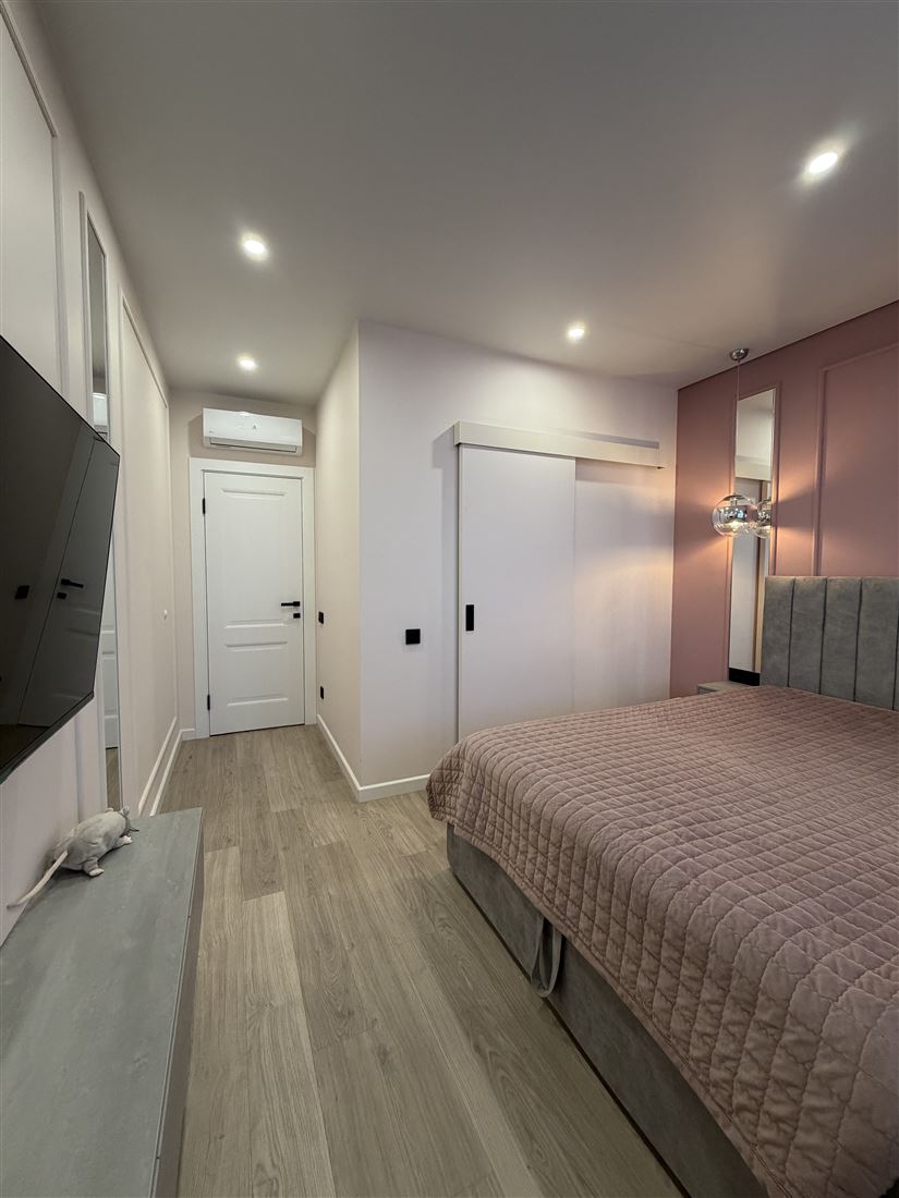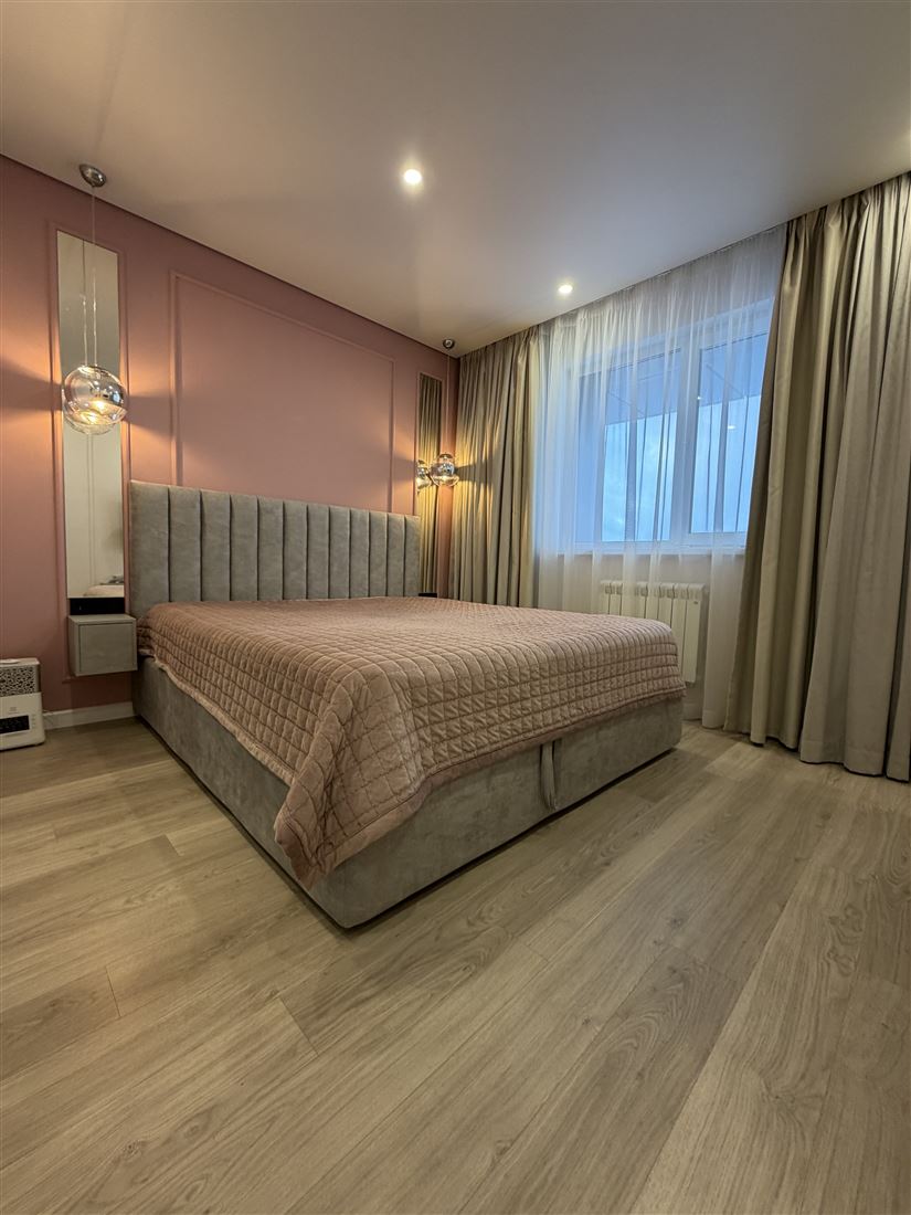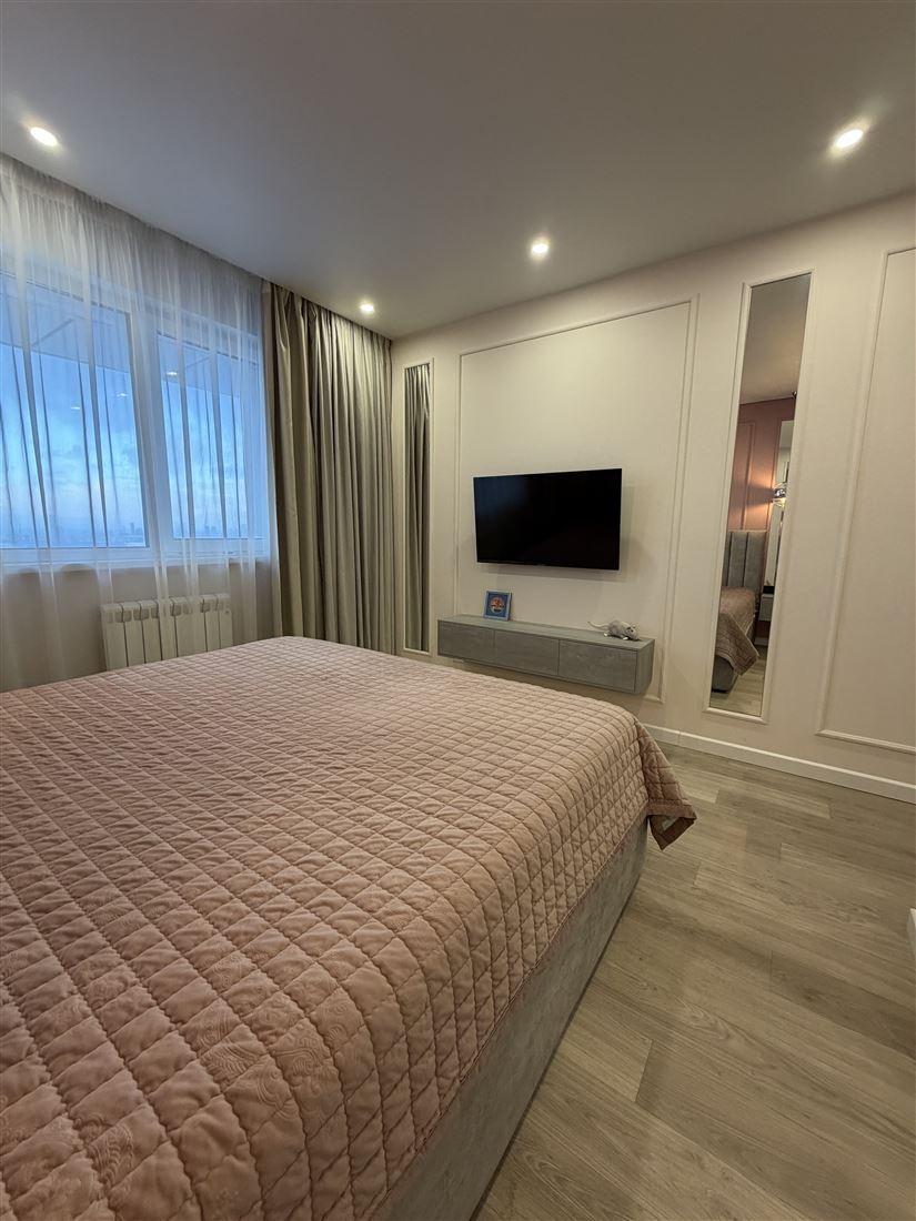 Кухня-гостиная оборудована всей необходимой мебелью и дорогостоящей техникой. Спальня с отдельной гардеробной, кроватью с ортопедическим матрасом и телевизором. Вторая спальня с большим, комфортным диваном и рабочей зоной. Совмещенный санузел. Гардеробная на входе. Везде в квартире шторы блэкаут для комфортного сна. Подогрев пола на балконе, входе и с/у.