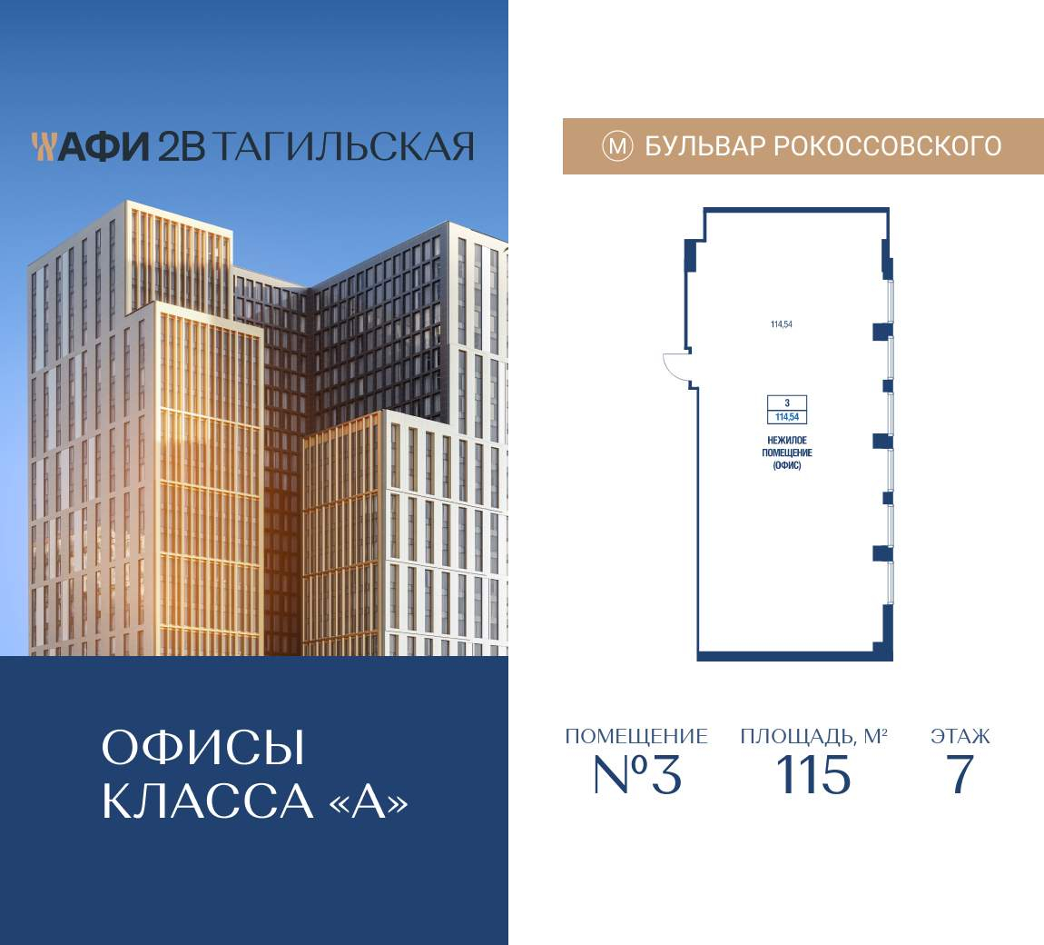 Продается коммерческое помещение общей площадью 115 м2 на 7 этаже в строящемся бизнес-центре АФИ2В Тагильская.