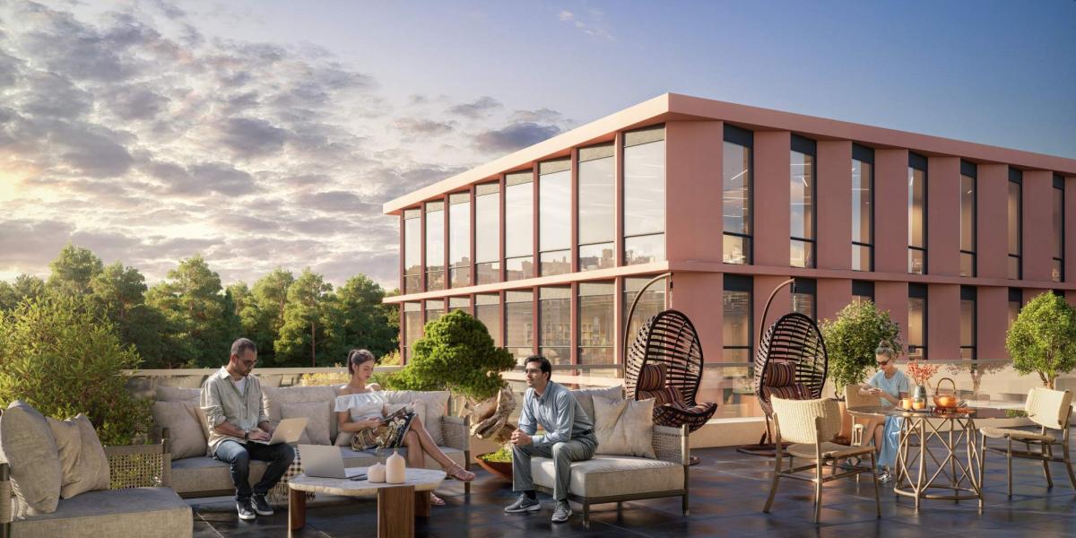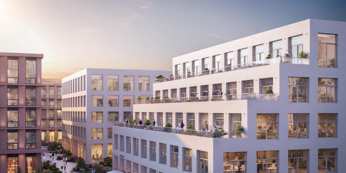 - На первых этажах офисных зданий просторные лобби с комфортной зоной ожидания, супермаркет, торговые помещения, отделения банков и сервисных служб, фитнес-студия