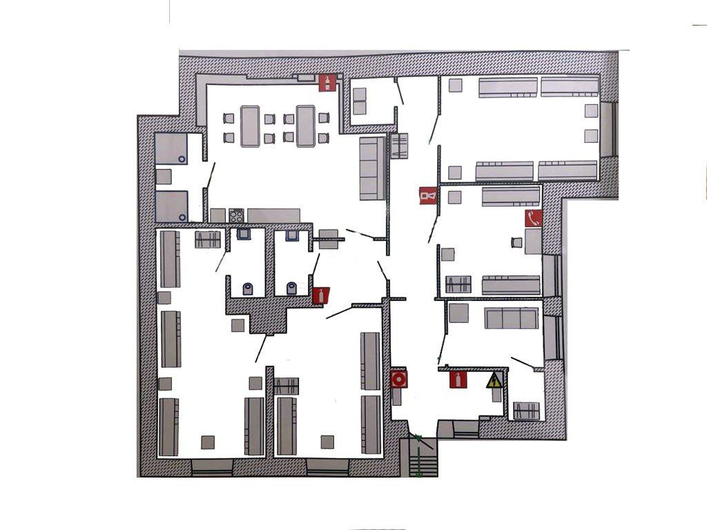 Большое открытое пространство для организации раскройного цеха, установки оборудования и пошивочных мест.
