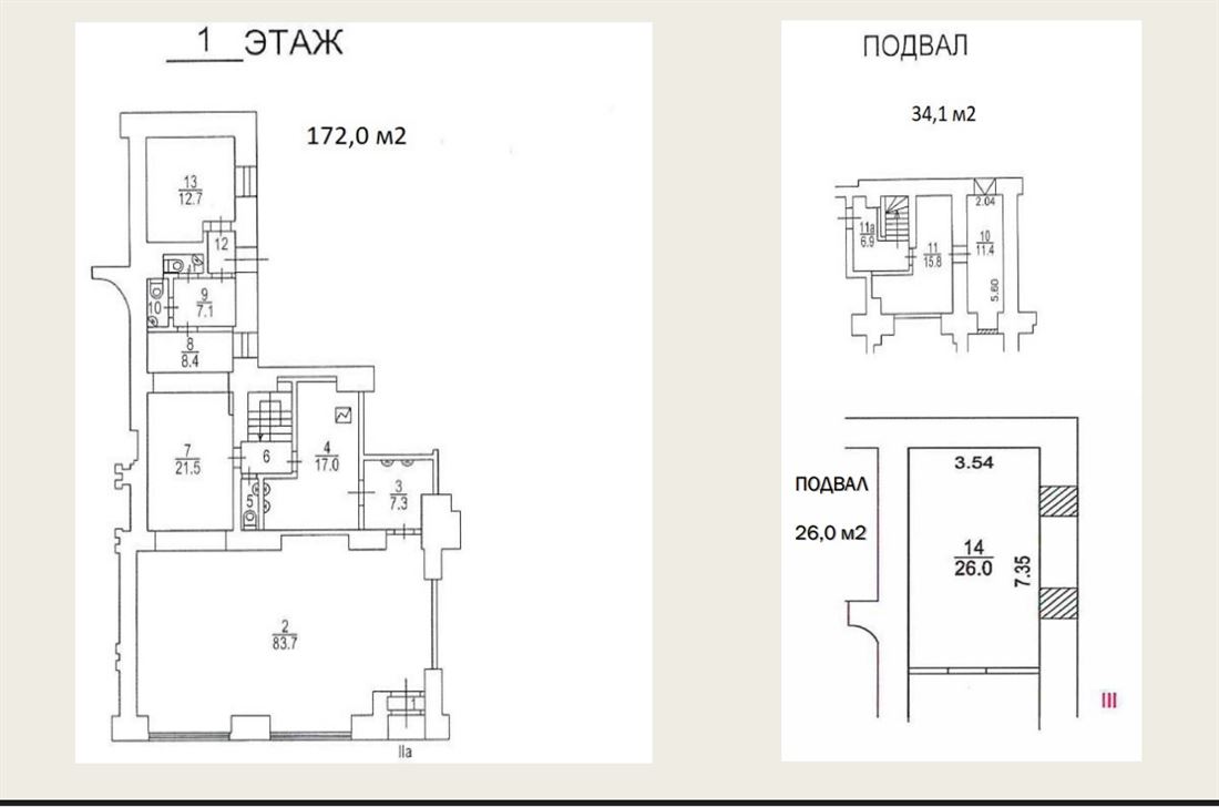 1-й этаж - 172 м2, подвал-60,1 м2. В помещении кондиционирование, большие витринные окна, приточно-вытяжная вентиляция, сигнализация, высокие потолки 4,5 м., отдельный вход, мокрые точки, санузлы, электричество до 85 кВт., место под вывеску, круглосуточный доступ 24/7.