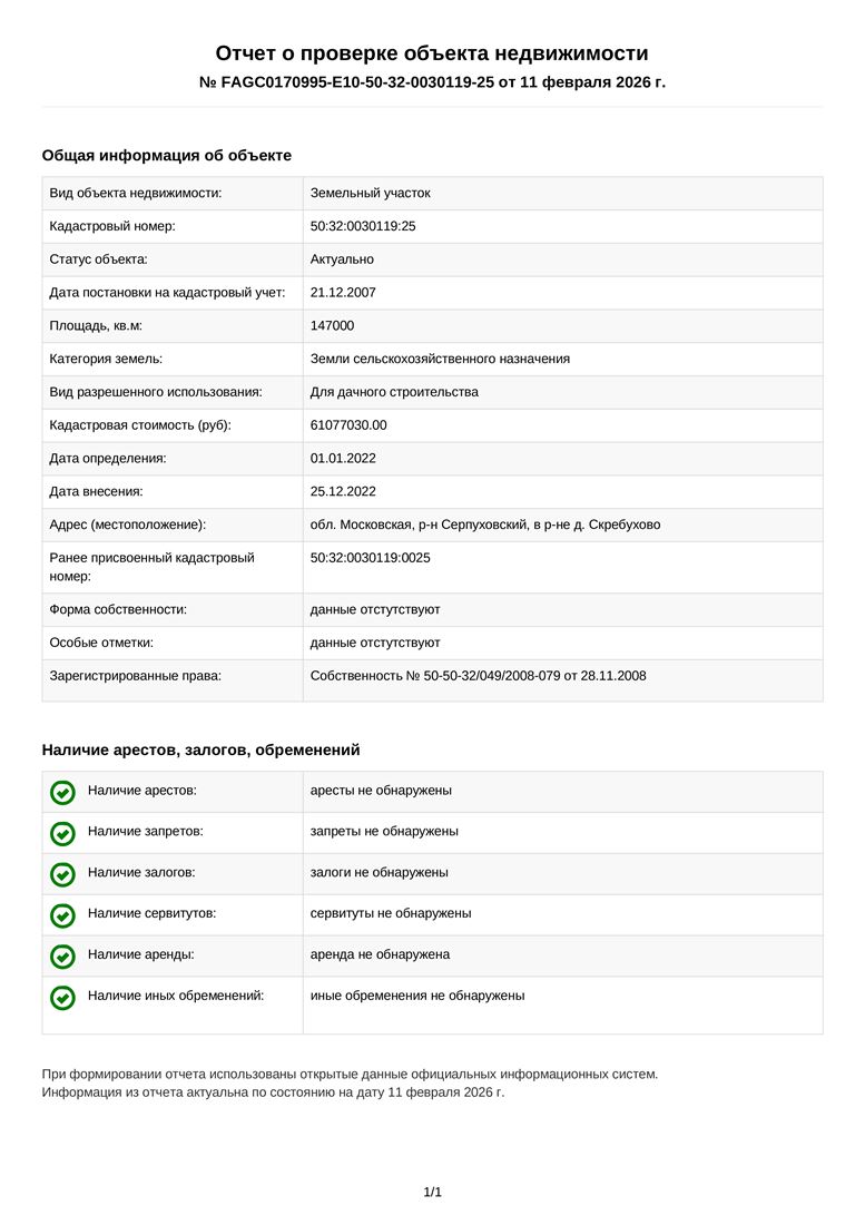 ID в ИМЛС: 20032662 Продам Участок площадью 14,7 га ( г Серпухов, деревня Скребухово)